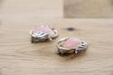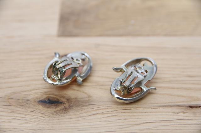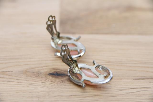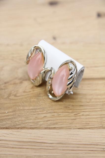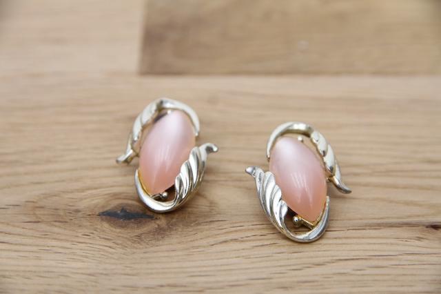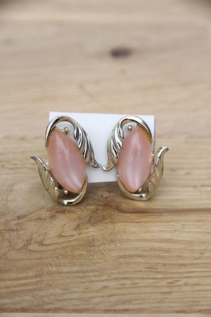 アメリカ製、淡いピンクが印象的なヴィンテージイヤリングです。葉っぱに包まれるような曲線的なデザインは女性らしさを醸し出します。