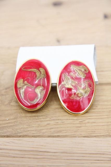 アメリカ製、抽象的なデザインが特徴の楕円のヴィンテージイヤリングです。大ぶりでインパクトがあります!