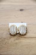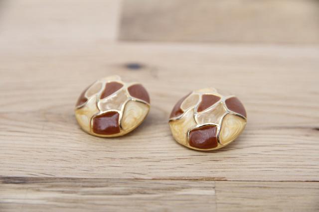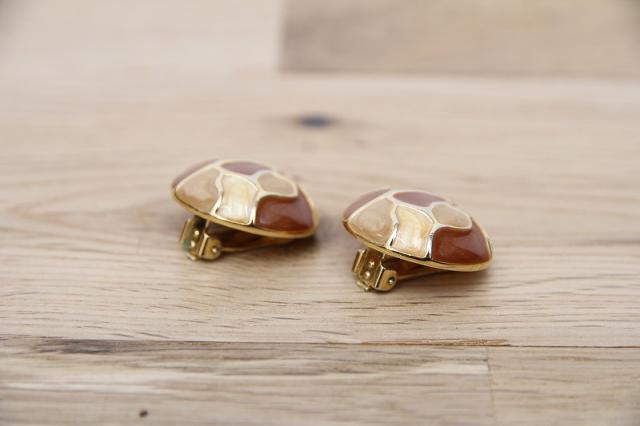 アメリカ製、カフェラテのようなカラーが印象的なヴィンテージイヤリングです。よく見るとパールのようなきらめきが女性らしいデザイン。