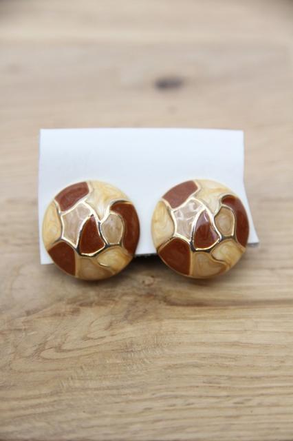 アメリカ製、カフェラテのようなカラーが印象的なヴィンテージイヤリングです。よく見るとパールのようなきらめきが女性らしいデザイン。