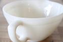 美しいアイボリー色のミルクガラスが魅力的な、ヴィンテージのFire-King(ファイヤーキング)ミキシングボウルです。しっかりとした持ち手と注ぎ口が付いており、お菓子作りや料理の際の使い勝手も抜群です。