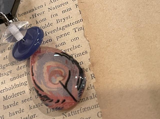 ガラスカボションにリバティを閉じ込め作られたイヤリングです。