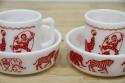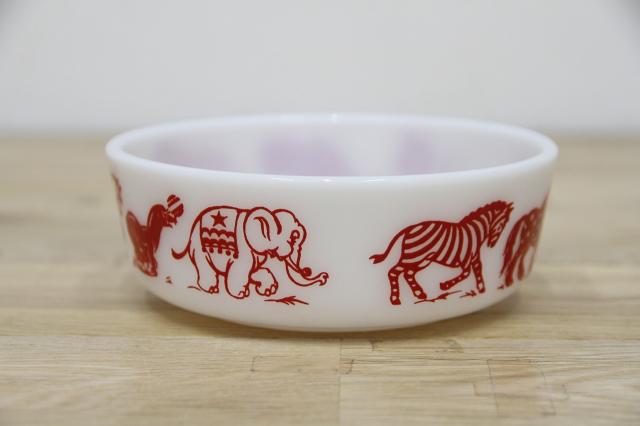 1950年代頃のヘーゼルアトラスのチャイルドシリーズ・サーカスボウルです。ゾウやオットセイ、ライオン、シマウマなどの動物たちが行進しています。