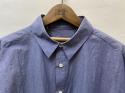 色糸と白糸を交互に配列して平織りした後、複数回強めのワッシャー加工を施すことで、新品の状態で、先染めと色落ちの区別がつかない程、絶妙な色合いになっております。洗い加工後のパリパリとした紙のような風合いも特徴です。独特のシワ感も加わり、シンプルでも存在感のあるシャツに仕上がりました。