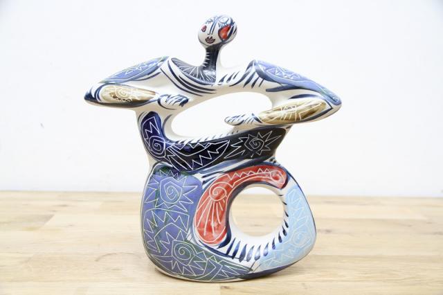 当初から、地域の素材、石器、磁器、耐火物、ブラシで手描きし、独自のデザインとモチーフを使用して、高温で作業することを選択。形は、ロマネスク様式のすべての地中海文化だけでなく、アフリカとオーストラリアのアボリジニの民族芸術からも引き出されており、そこにデザイン、ボリュームの簡素化、モチーフが追加され、独自の創造的な統合が生み出されています。