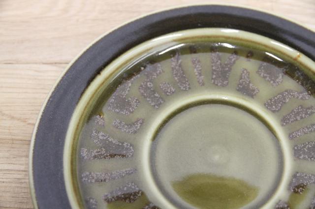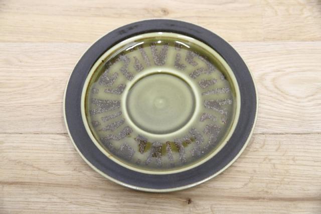 渋めな緑と茶の色の組み合わせが落ち着いた雰囲気ですので、和のテイストにもピッタリ。ソーサーだけなので、植物の受け皿などインテリアとしてお使いいただくのもおススメです。
