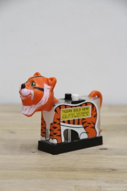 アメリカヴィンテージのプラスチック製のソルト&ペッパー。可愛らしいデザインで、背中のボタンを押すと底面から塩コショウが出る仕組みになっています。