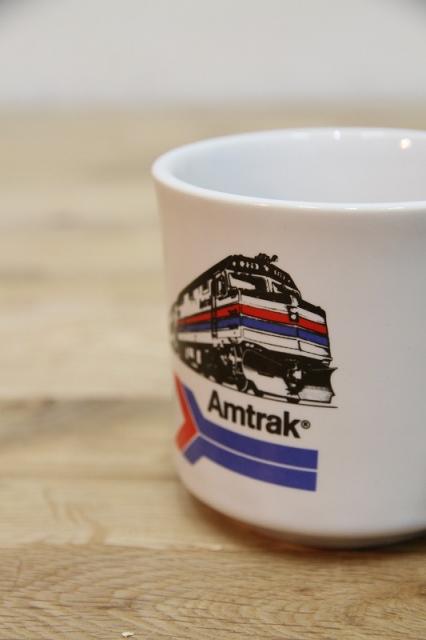 アメリカヴィンテージのマグカップになります。アメリカでも実際に走行しているディーゼルの機関車がデザインされており、販促商品として現地でも販売されていた物になります。