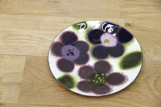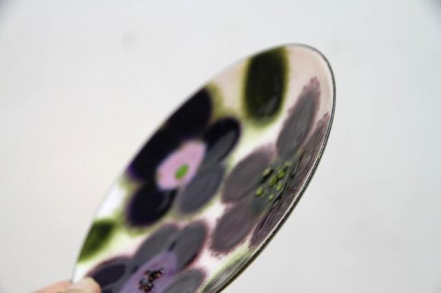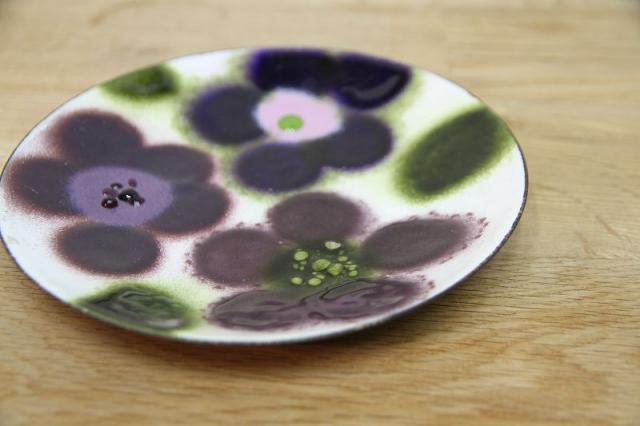 アメリカ、カリフォルニア州で作られた陶器のお皿。お花柄のデザインが特徴的で、焼き物ならではの優しい色使いも魅力的です。