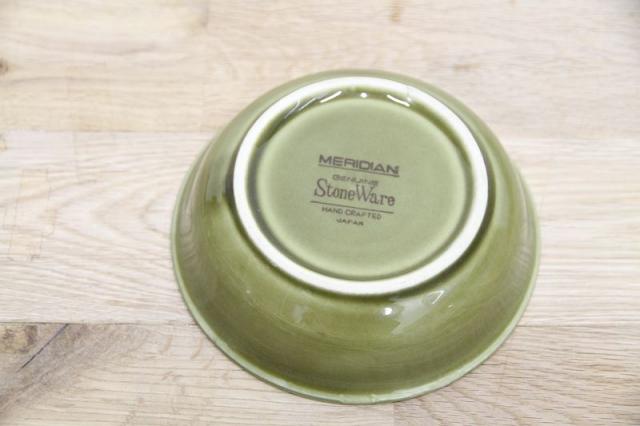 1970年代のMADE IN JAPANの食器。MERIDIAN/GENUINE StoneWare/HAND CRAFTED JAPANの刻印が裏に入っています。