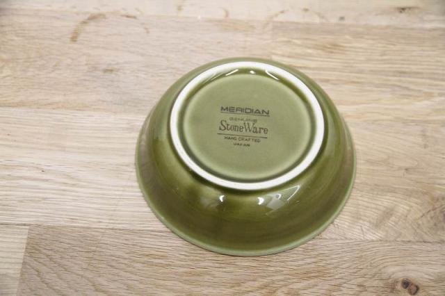 1970年代のMADE IN JAPANの食器。MERIDIAN/GENUINE StoneWare/HAND CRAFTED JAPANの刻印が裏に入っています。