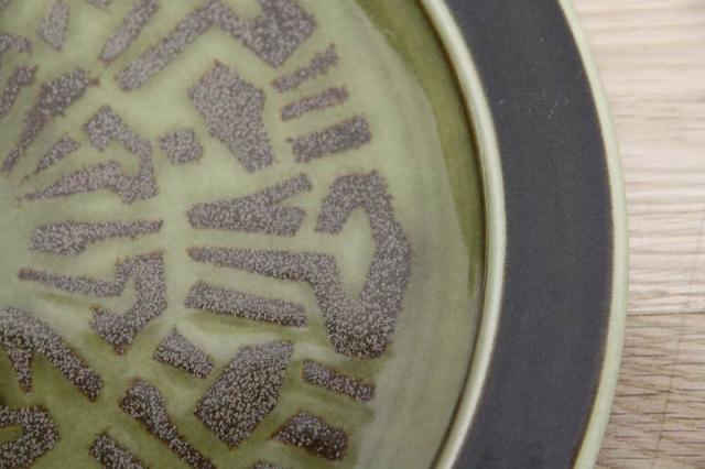 渋めな緑と茶の色の組み合わせが落ち着いた雰囲気ですので、和のテイストにもピッタリ。少し大きいですが植物の受け皿などインテリアとしてお使いいただくのもおススメです。