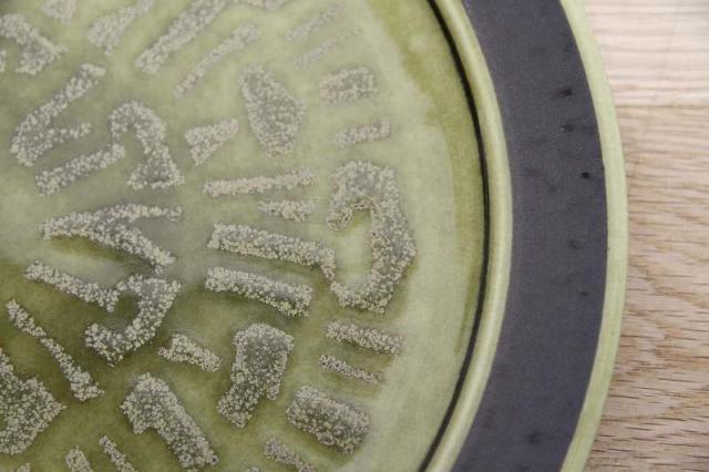 渋めな緑と茶の色の組み合わせが落ち着いた雰囲気ですので、和のテイストにもピッタリ。少し大きいですが植物の受け皿などインテリアとしてお使いいただくのもおススメです。