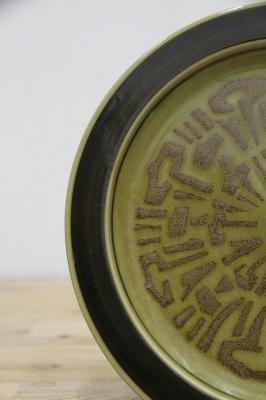 渋めな緑と茶の色の組み合わせが落ち着いた雰囲気ですので、和のテイストにもピッタリ。少し大きいですが植物の受け皿などインテリアとしてお使いいただくのもおススメです