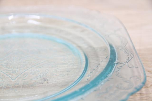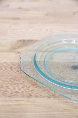 細かい刻印が施されており、高級感があるプレートになっております。淡い青のグラスを是非お試し下さい。