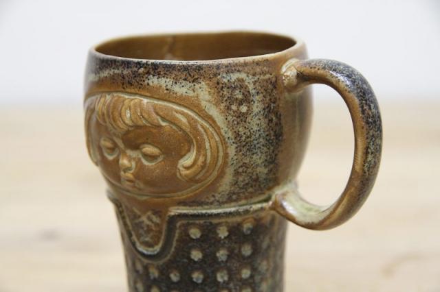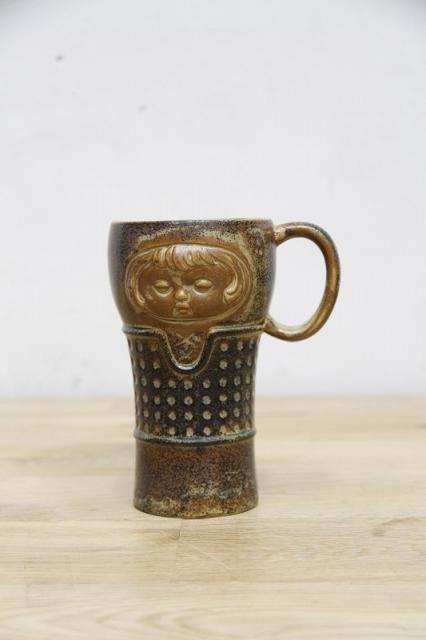 女の子の顔がデザインされていて、可愛らしいマグカップになっております。高さもあるため、花瓶の様に使ってもオススメのアイテムです。