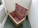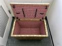 大容量&機能的な内部構造蓋を開けると、内側には鮮やかな赤系のチェック柄が施されています。【大容量収納】 元々は掃除機本体を収納していたため、深さがあり、ブランケットや衣類などかさばる物を一気に片付けられます。