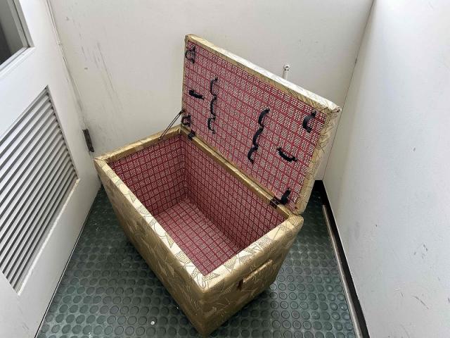 歴史的背景を持つユニークなアイテムです。スツールとしての機能に加え、深さのある収納力が魅力です。