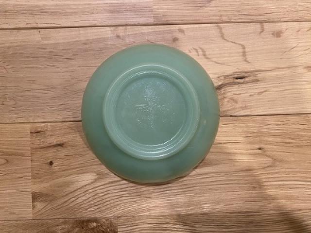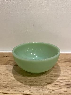 底の部分がフラットなタイプのファイヤーキングのボウルです。積み重ねて収納する事もでき、本当に使い勝手がよいアイテム。当時はサラダ、シリアル、スープなど、様々な料理に使われていました。