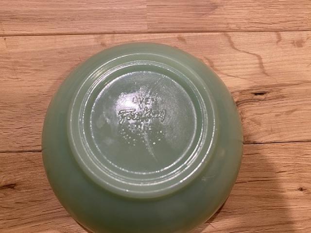 底の部分がフラットなタイプのファイヤーキングのボウルです。積み重ねて収納する事もでき、本当に使い勝手がよいアイテム。当時はサラダ、シリアル、スープなど、様々な料理に使われていました。