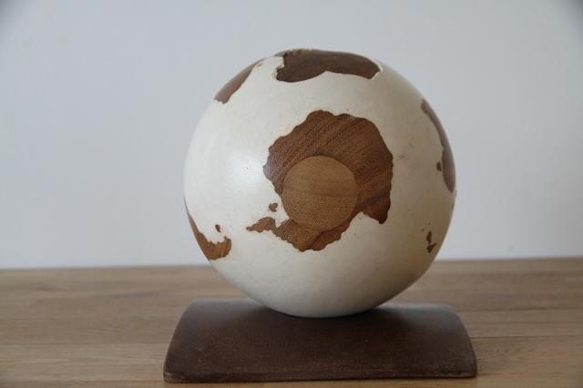 陸地部分は天然木、水面部分は樹脂製です。台座は地球儀を固定するための窪みがあります。