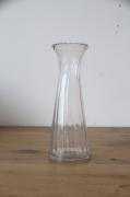 美しいデザイン: 縦にフルート(溝)が入ったガラスボディは、光の屈折で美しい陰影を生み出し、存在感のある佇まい。現代のインテリアにもしっくりと馴染む、洗練されたデザインです。