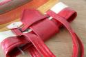 特徴的な素材「ナウガハイド」: タグにもある通り、このバッグは「Naugahyde(ナウガハイド)」というビニールレザー(合成皮革)で作られています。耐久性に優れ、手入れがしやすく、本革のような質感と光沢が特徴です。ヴィンテージアイテムとしてもコレクターに愛される素材です。