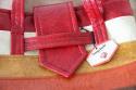 時代の特徴: このナウガハイドを使ったカラフルなストライプのバッグは、1960年代後半から1970年代のアメリカンヴィンテージスタイルを象徴するアイテムとして知られています。