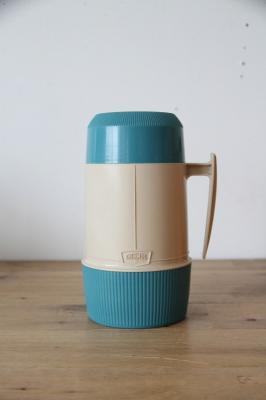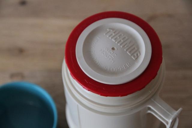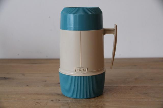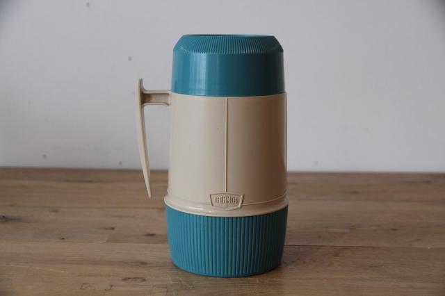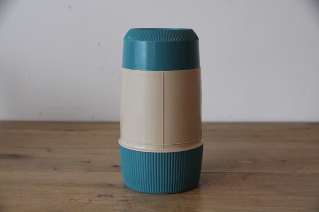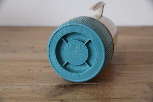 アメリカ屈指の老舗魔法瓶メーカー、Thermos(サーモス)社のヴィンテージ・フードジャーです。 現行品にはない、当時のアメリカを感じさせるターコイズブルーとベージュの絶妙なバイカラーが目を引きます。