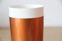 深みのあるメタリックオレンジ(コッパー系カラー)と、清潔感のあるホワイトのコントラストが目を引くミッドセンチュリー期らしいデザイン。 底面には「MADE IN U.S.A.」の刻印があり、当時のプラスチック成型技術の高さと、古き良きアメリカのライフスタイルを感じさせます。