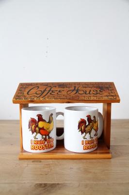 ニワトリ 親子 マグカップ 2個&木製コーヒーカップスタンド セット