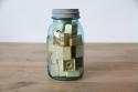 ヴィンテージ Ball社製メイソンジャーと、その中に詰められたレトロなアルファベットブロックのセットです。
