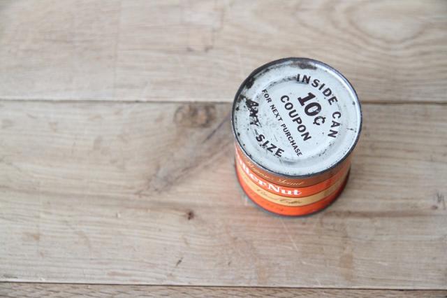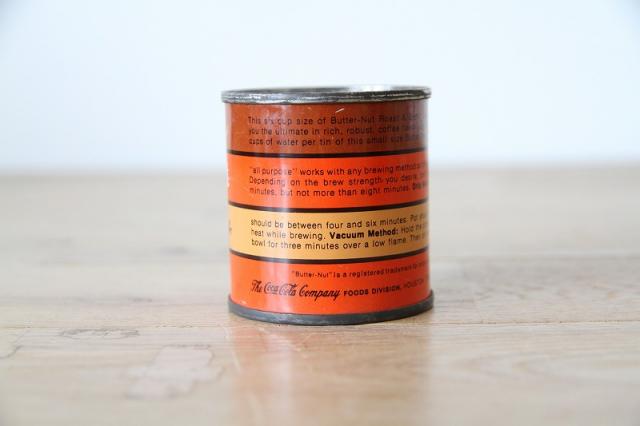 ノスタルジーを感じさせるオレンジとブラウンの配色が魅力的な、ヴィンテージのButter-Nut(バターナッツ)コーヒー缶です。