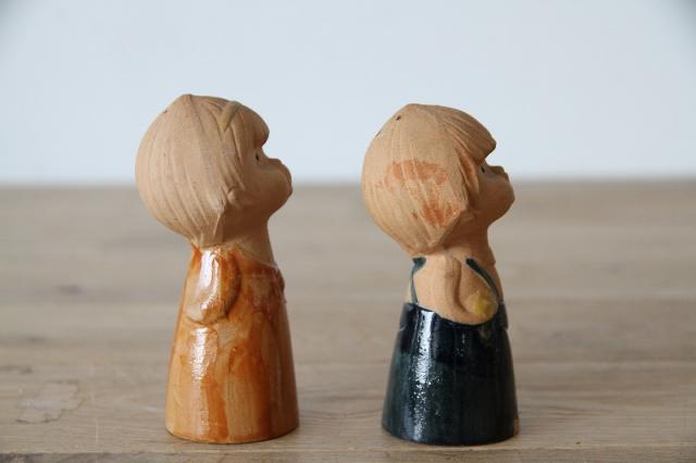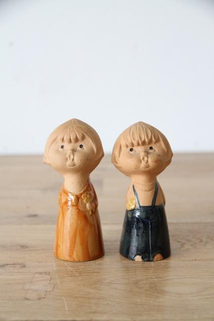 【Made in Japan】レトロ可愛い 少女と少年のソルト&ペッパー 調味料入れ