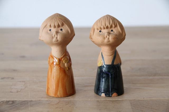 【Made in Japan】レトロ可愛い 少女と少年のソルト&ペッパー 調味料入れ
