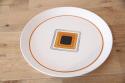 デザイナー Ben Seibel (ベン・サルト) が手がけた DUPLEX (デュプレックス) シリーズの、AXIOM (アクシオム) パターンです。大胆なオレンジと黒の幾何学模様が、食卓にモダンでレトロなアクセントを加えます。