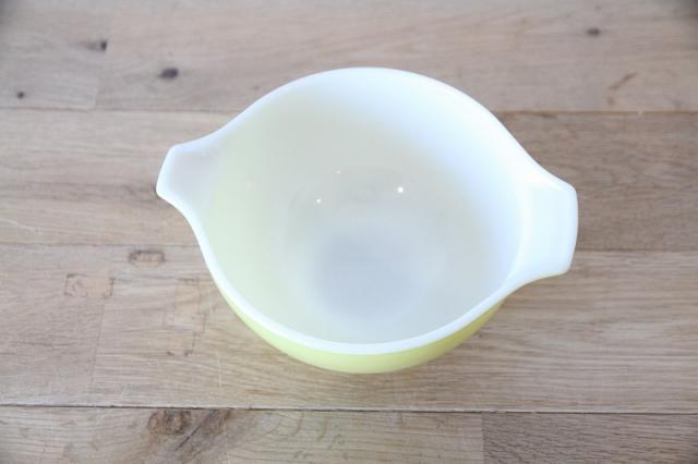 1950年代〜70年代にかけてアメリカで製造された、オールドパイレックスを代表する人気の「シンデレラボウル」です。 注ぎ口がハンドルを兼ねた機能的なデザインが特徴す。
