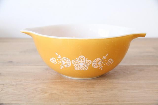 アメリカの家庭で長く愛されてきた、パイレックスの代名詞とも言える「バタフライゴールド」シリーズのミキシングボウルです。