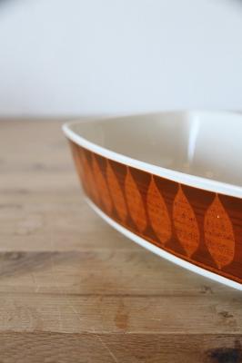 「TERRA COTTA(テラコッタ)」と名付けられた通り、深みのあるブラウンとオレンジのリーフ(または雫)のようなグラフィックが重なり合い、食卓に落ち着いた彩りを添えてくれます。