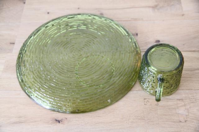 アメリカのヴィンテージガラスを代表するブランド、アンカーホッキング(Anchor Hocking)社の人気シリーズ「ソレノ(Soreno)」のスナックセットです。