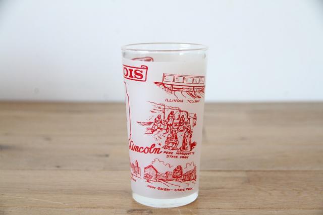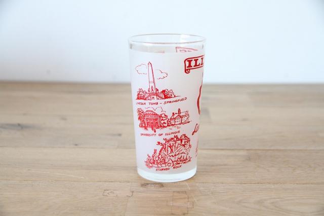 アメリカ・イリノイ州の歴史と観光名所が描かれた、ヴィンテージ・スーベニアグラスです。