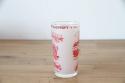ミルクガラスのような柔らかな透け感のあるフロスト(艶消し)加工が施されており、赤いプリントがレトロで温かみのある雰囲気を醸し出しています。