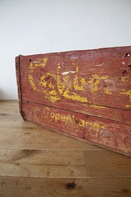 デンマークの老舗ビールブランド、Carlsberg(カールスバーグ)のヴィンテージ木製ボックスです。赤く塗装されたボディには、かつてビールの輸送に使われていた証として、ブランド名と地名「Copenhagen」の文字が大胆にステンシルで施されています。