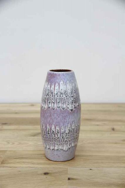 ドイツ製ヴィンテージの陶器のフラワーベースです。キレイなラベンダー色と、ギザギザと上下に描かれた模様が印象的ですね。優しい雰囲気のある素敵な花瓶です。