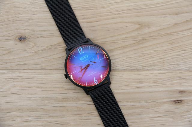 WELDERの時計は角度が変わると文字盤がオレンジに見えます♪