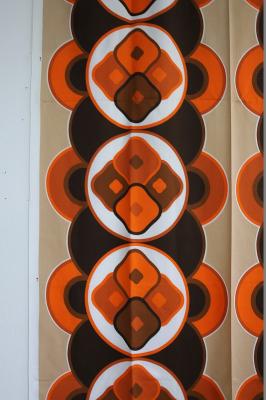 ミッドセンチュリーな雰囲気漂う、ヴィンテージのファブリックです。季節問わずお使いいただける質感の生地で、あまり透け感がなく程よく厚みがあるインテリアファブリック。壁に掛けたり、カーテンとしてアレンジをするのにもおすすめです。