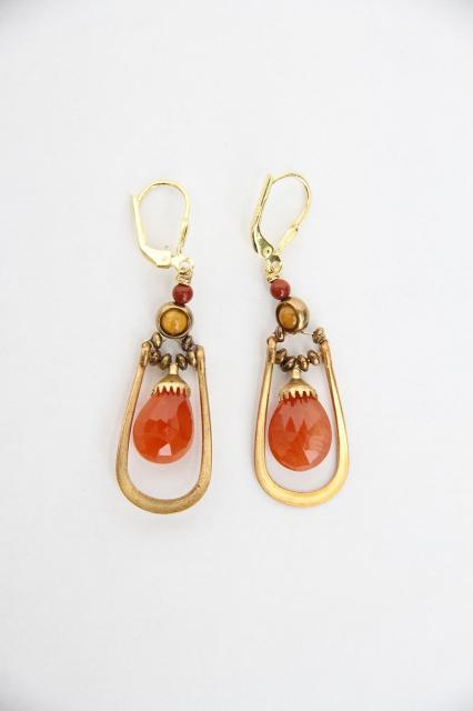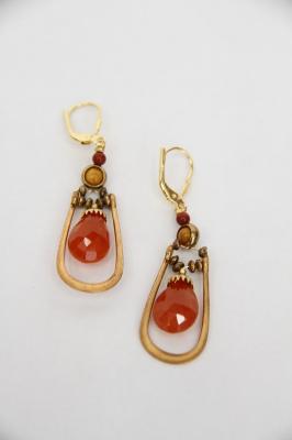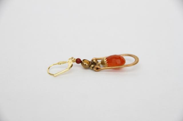 ヴィンテージパーツを自由な発想で組合わせた、存在感のあるJoli Jewelryのピアスです。ヴィンテージパーツのフレームの中には、あたたかみのあるカーネリアンの石が。コーディネートを明るくしてくれます。