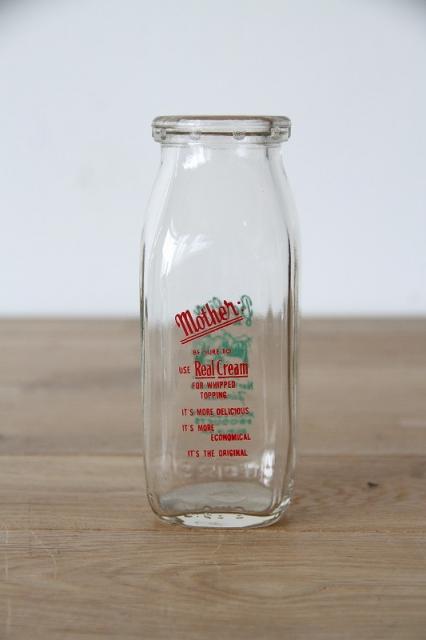 もう一方の面には、「Mother's REAL CREAM」の文字と「BE SURE TO USE Real Cream FOR WHIPPED TOPPING IT'S MORE DELICIOUS IT'S MORE ECONOMICAL IT'S THE ORIGINAL」という、当時の生クリームの販促メッセージが描かれており、ノスタルジックな雰囲気を醸し出しています。