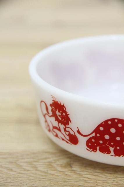 1950年代頃のヘーゼルアトラスのチャイルドシリーズ・サーカスボウルです。ゾウやオットセイ、ライオン、シマウマなどの動物たちが行進しています。
