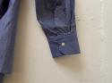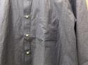色糸と白糸を交互に配列して平織りした後、複数回強めのワッシャー加工を施すことで、新品の状態で、先染めと色落ちの区別がつかない程、絶妙な色合いになっております。洗い加工後のパリパリとした紙のような風合いも特徴です。独特のシワ感も加わり、シンプルでも存在感のあるシャツに仕上がりました。